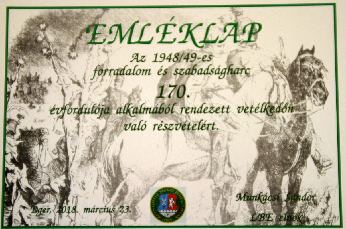 A Lenkey-s Bajtársi Egyesület az Agria Kincs Kulturális és Sportegyesület segítségével vetélkedőt szervez az 1848/49-es forradalom és szabadságharc 170. évfordulója alkalmából a már hagyományosnak nevezhető módon.